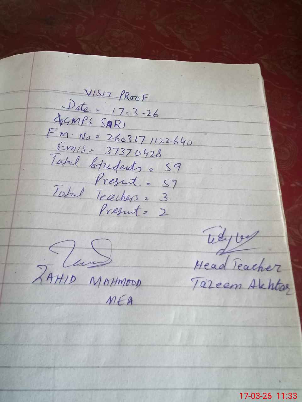 | EMIS Code: 37370428 | Name of School: GMPS SARI | |||