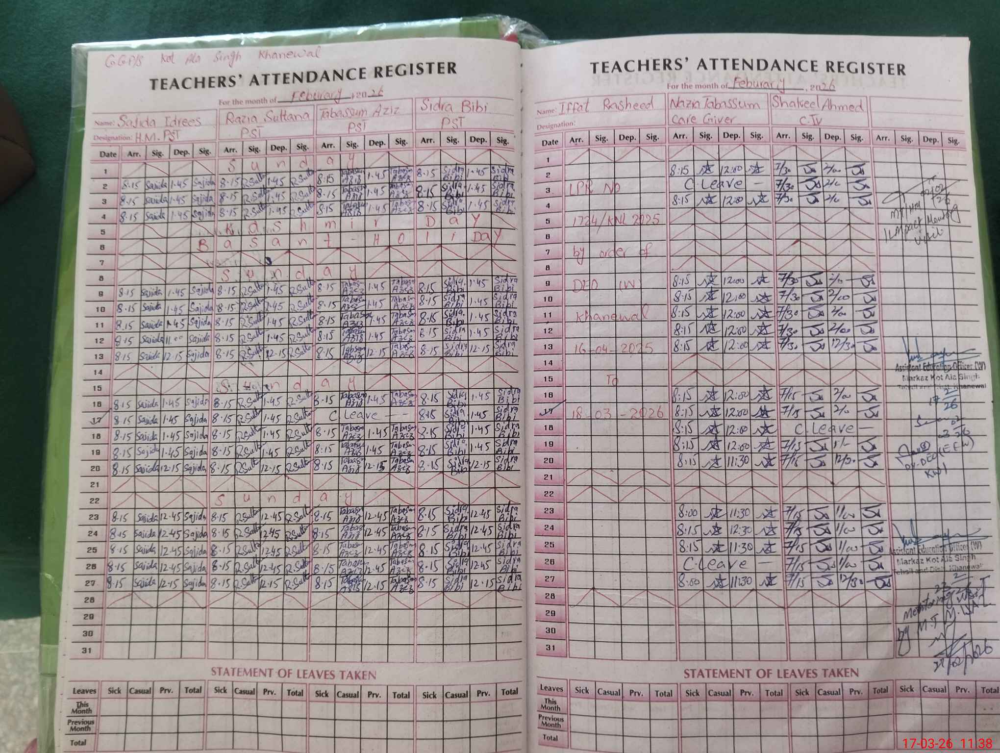 | EMIS Code: 36420351 | Name of School: GGPS KOT ALA SINGH, KHANEWAL | |||