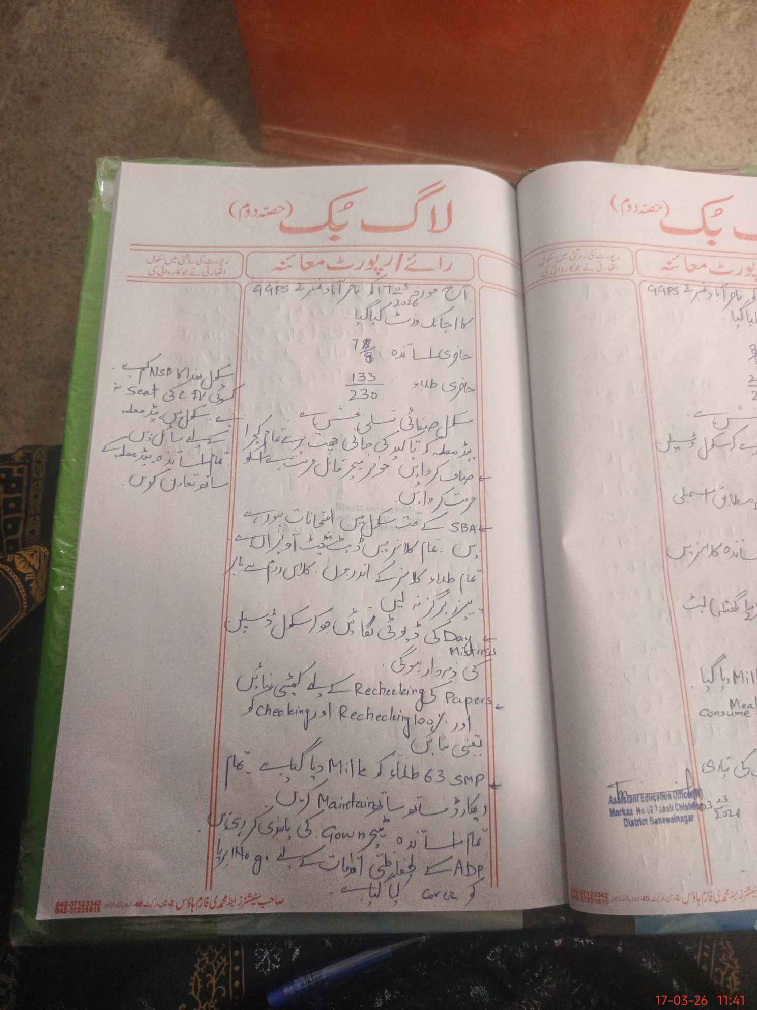 | Certified that this School was Inspected by the Undersigned MEA/DMO Today and the Information Stated Above is as Per Record. | |||||
