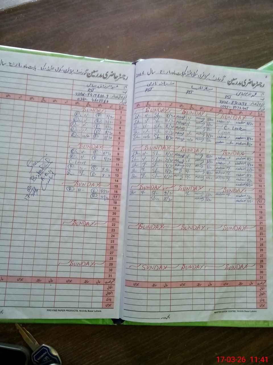| CNIC | Full Name | Designation | R/C | Absence During Last Calender Month |
