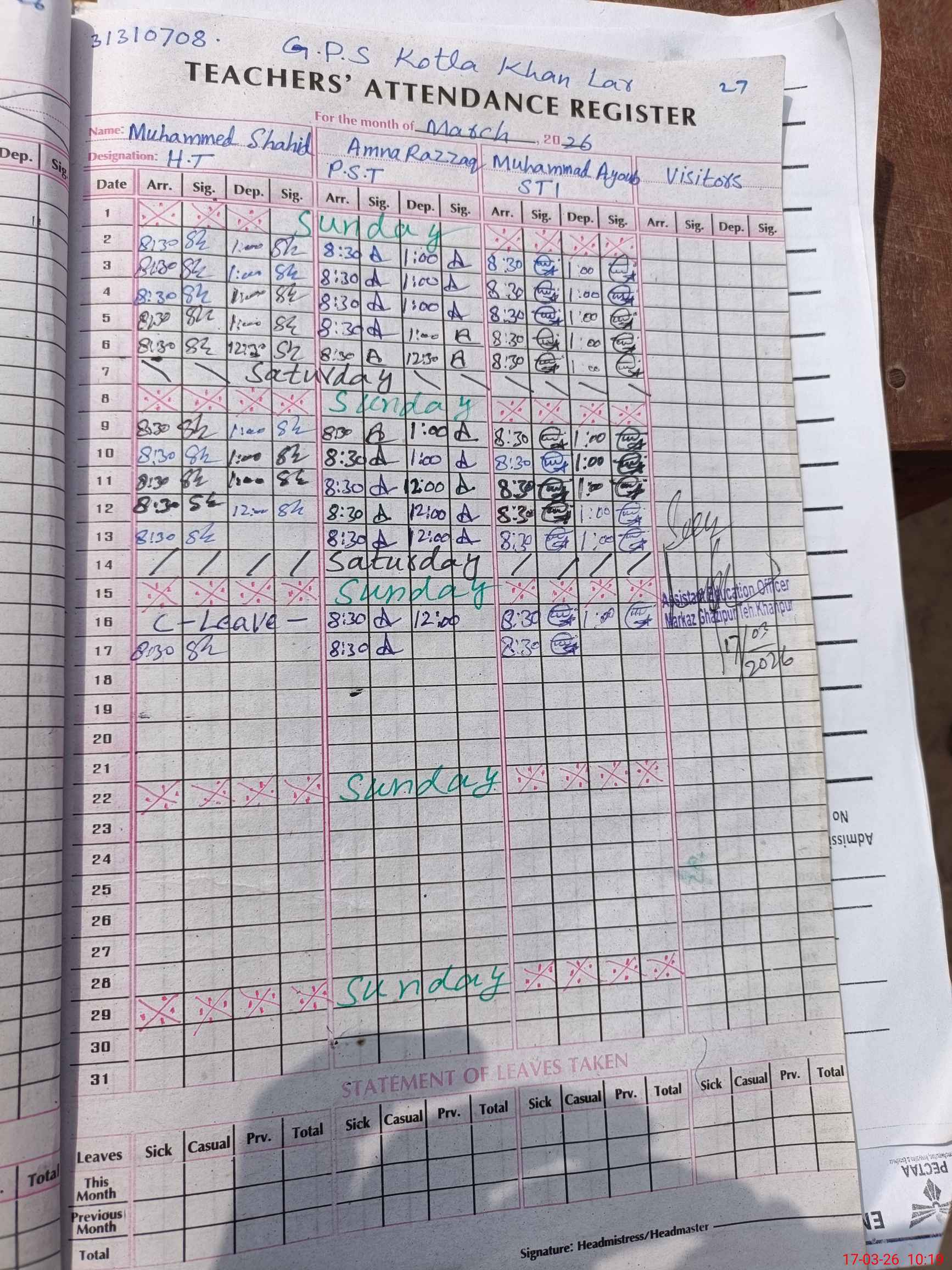 | Name: Mu**** Sh**** Designation: (School Headmaster's/Headmistress's) PST Phone/Cell Number: 03**** |