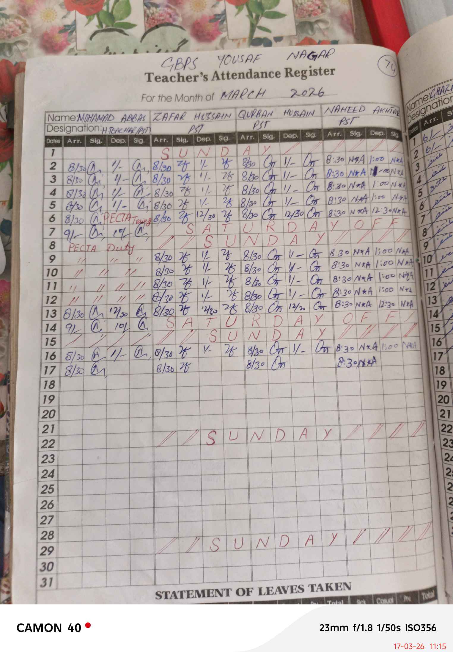 | EMIS Code: 31330357 | Name of School: GPS YOUSAF NAGAR | |||