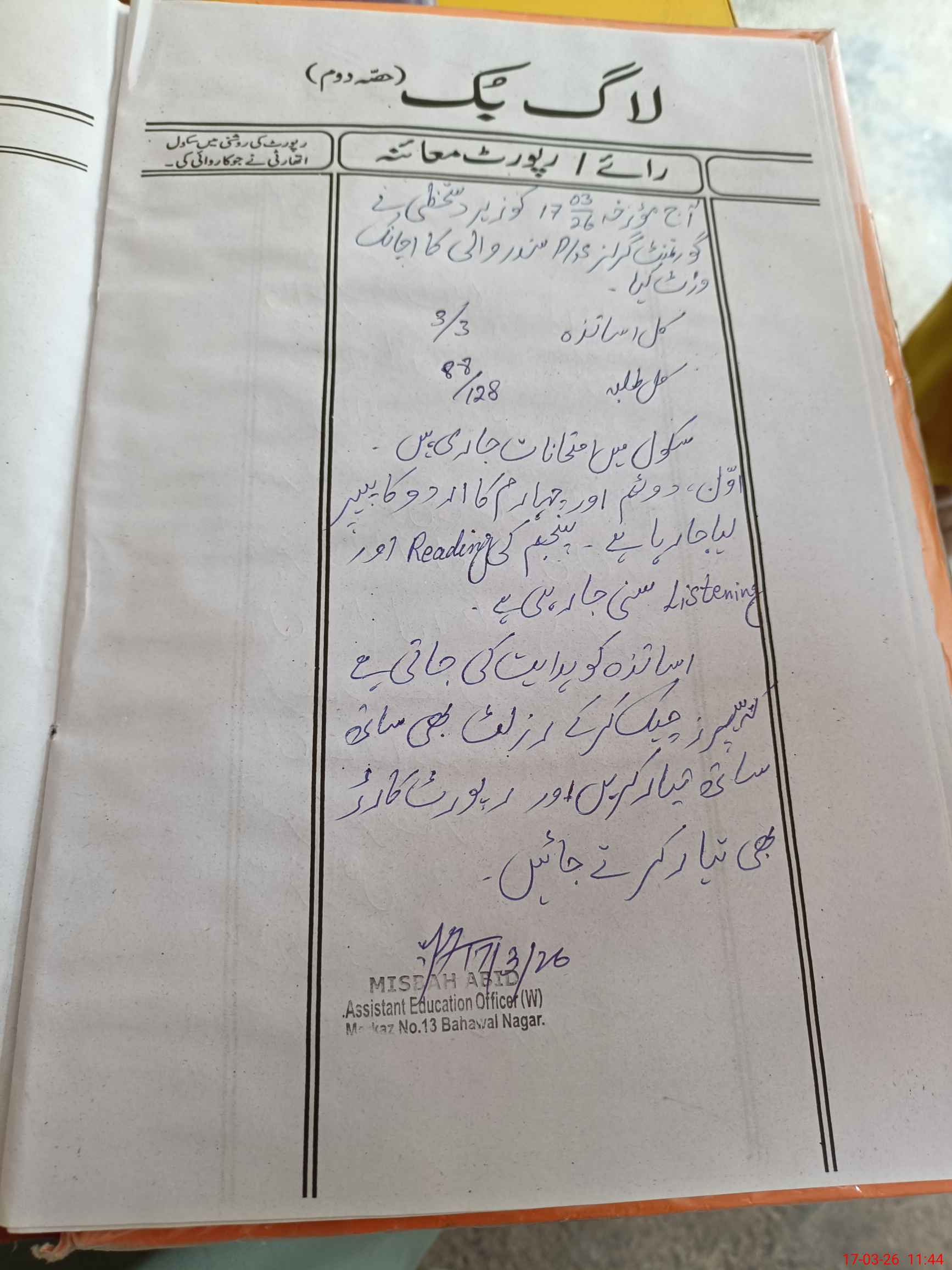 | District: BAHAWALNAGAR | Tehsil: BAHAWALNAGAR | Markaz: BWN.13-FEMALE | Level: Primary | |
