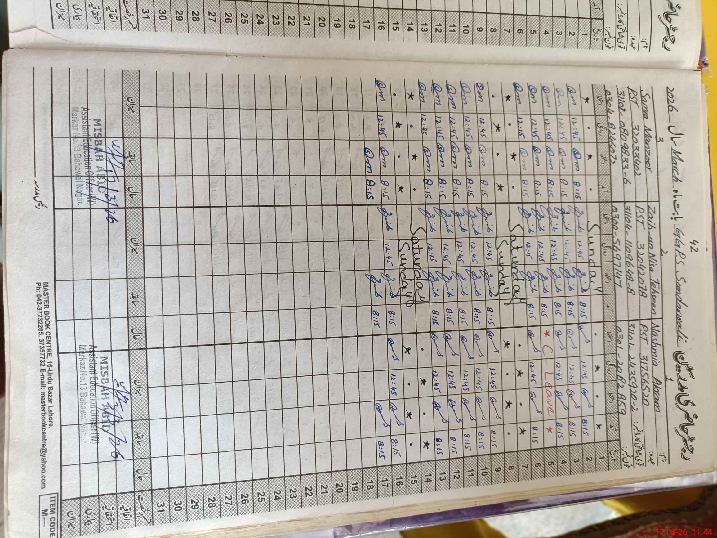 | Name: NA**** AK**** Designation: (School Headmaster's/Headmistress's) PST Phone/Cell Number: 03**** |