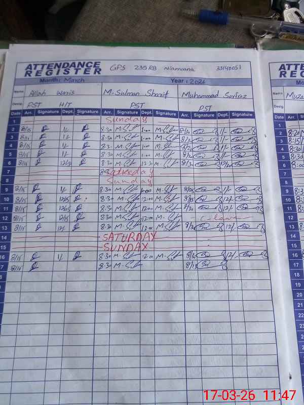 | Name: AL**** WA**** Designation: (School Headmaster's/Headmistress's) PST/PTC/JV Phone/Cell Number: 03**** |