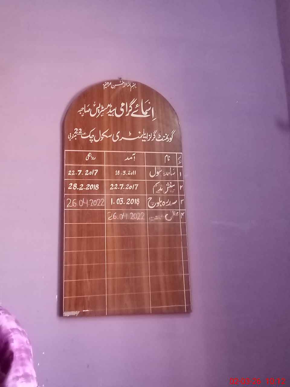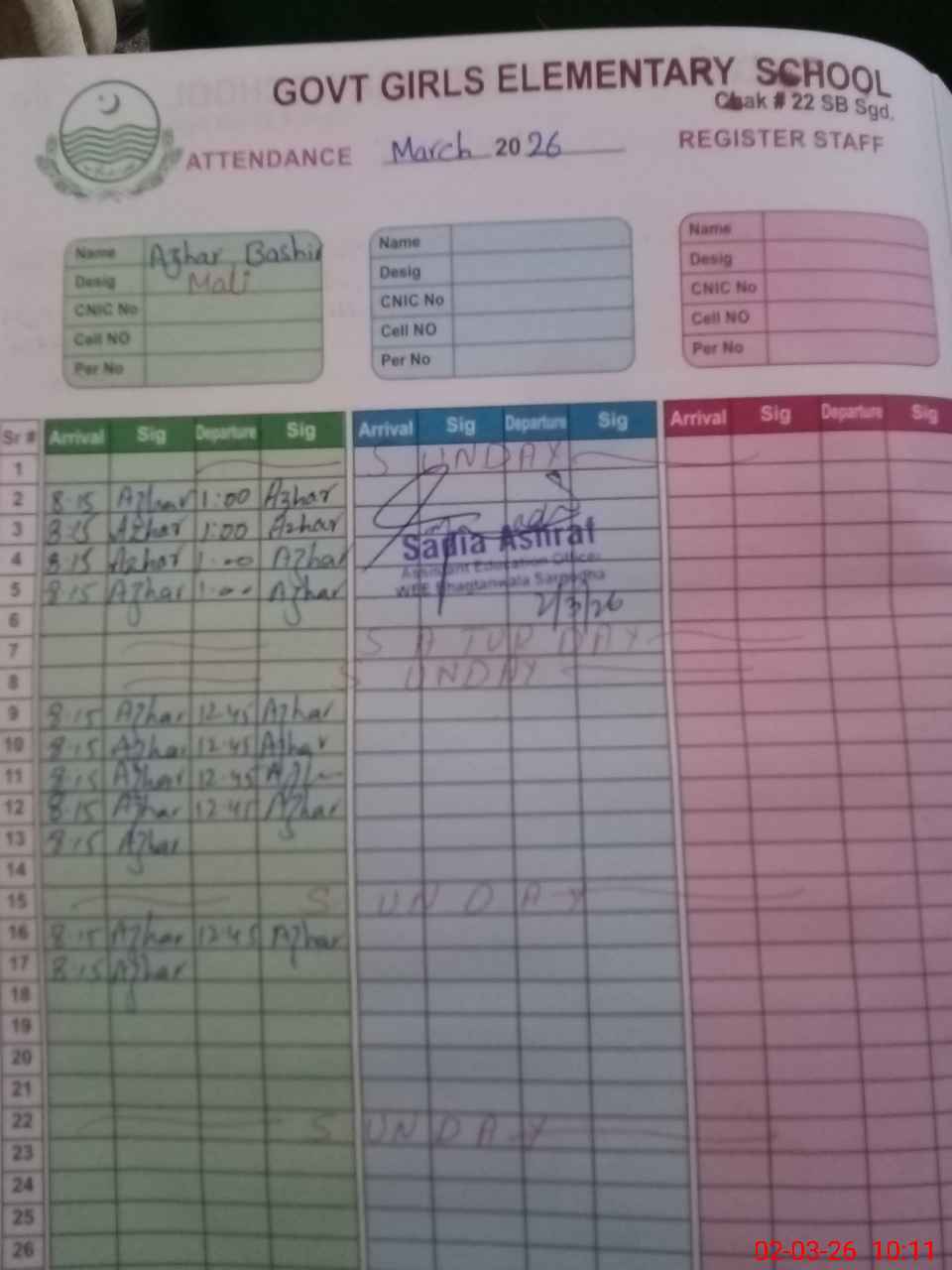| Name: UZ**** SH**** Designation: (School Headmaster's/Headmistress's) SST Phone/Cell Number: 03**** |