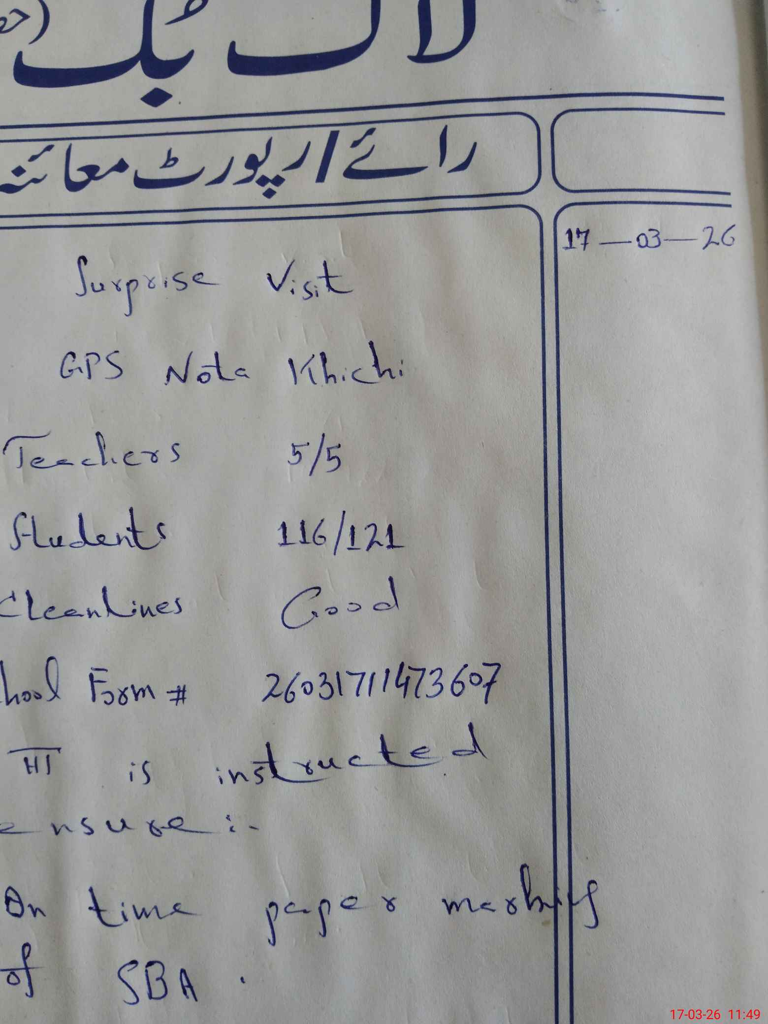 | EMIS Code: 39320336 | Name of School: GPS NOTHA KHICHI | |||