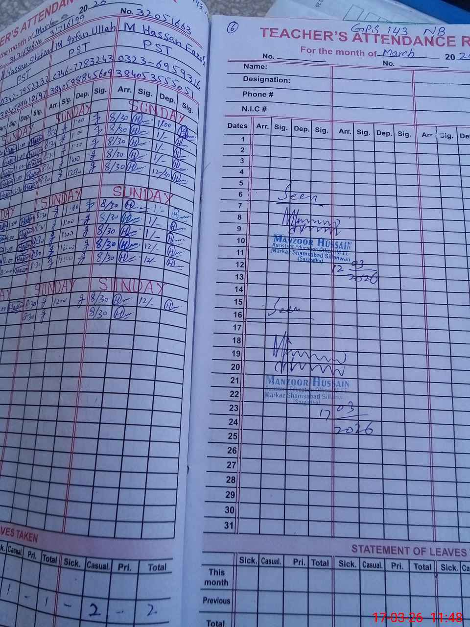 | Name: Am**** Ab**** Designation: (School Headmaster's/Headmistress's) PST Phone/Cell Number: 03**** |