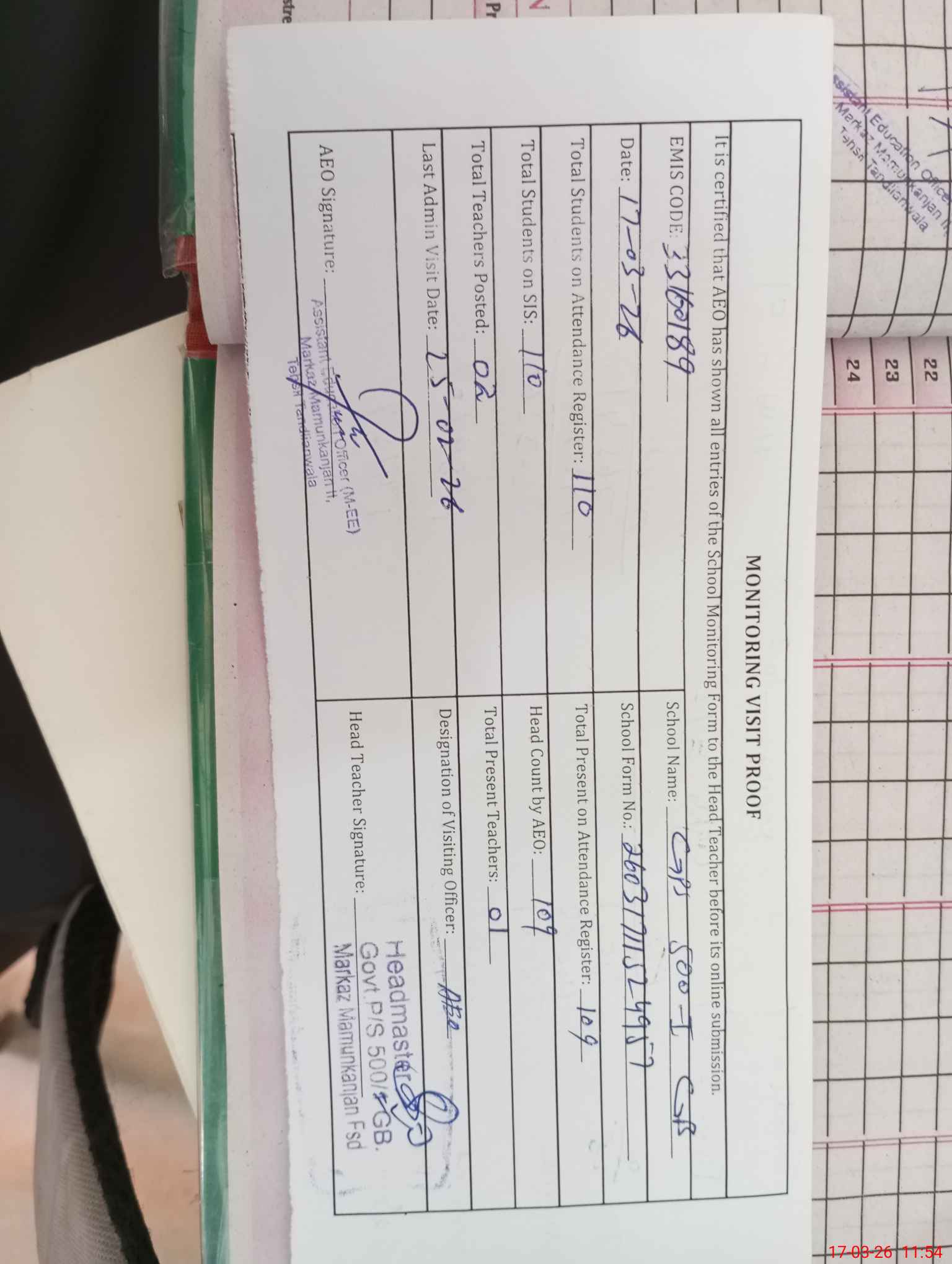 | EMIS Code: 33160189 | Name of School: GPS CHAK 500 GB I MAMUNKANJAN | |||