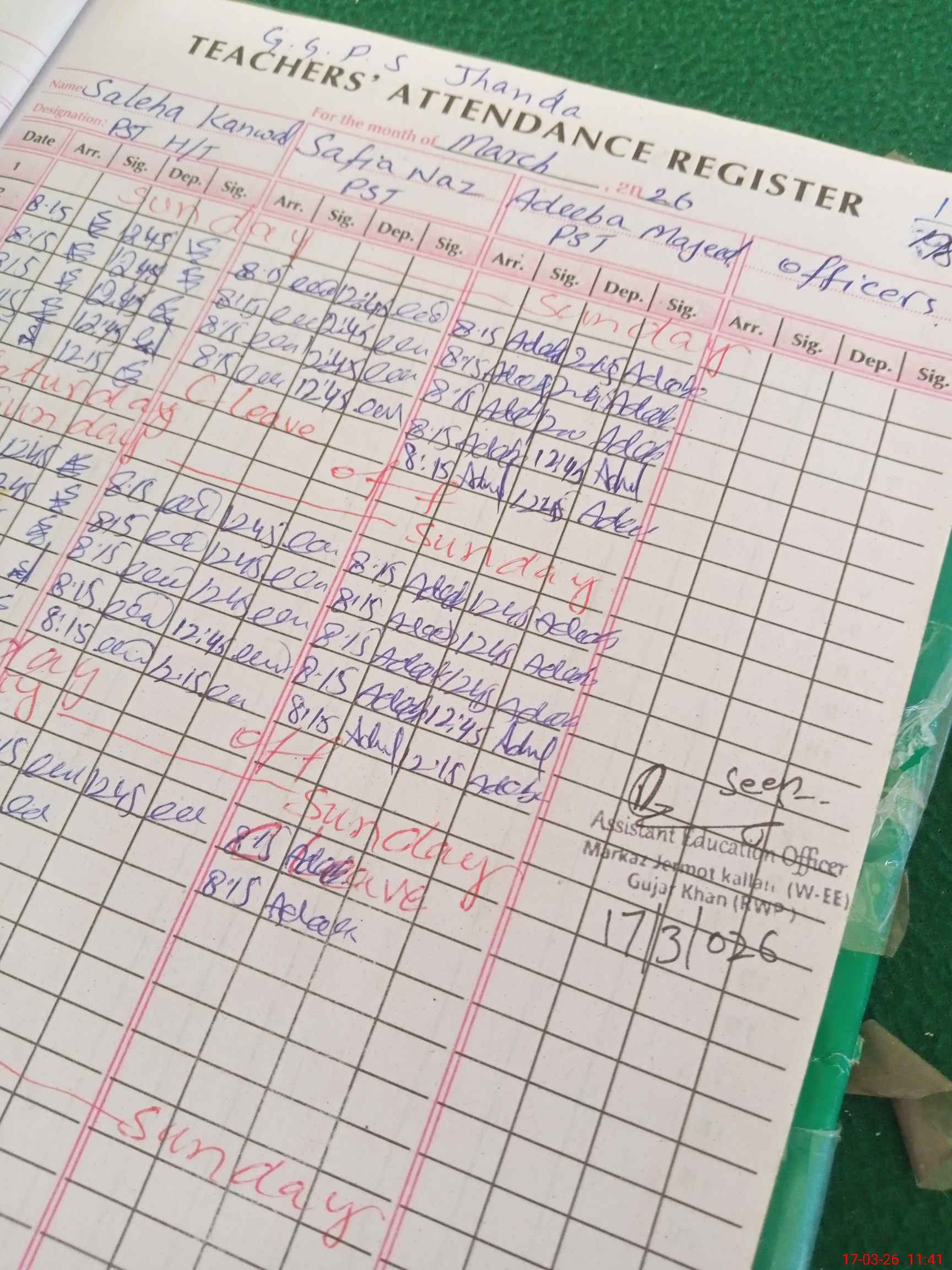 | Attendance Register | Head Teacher | MEA with School | Visit Proof |