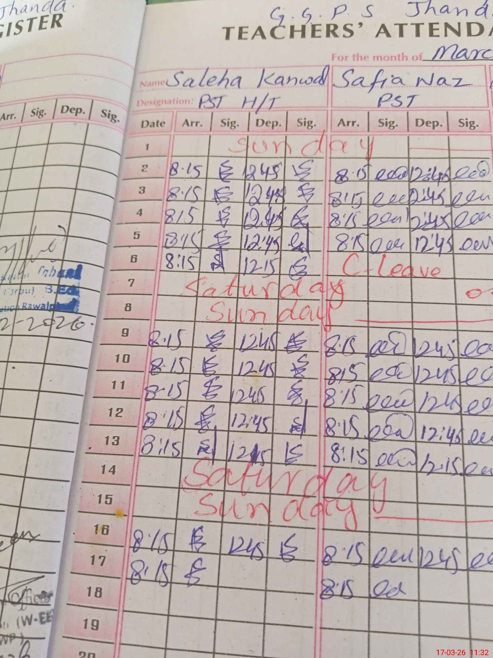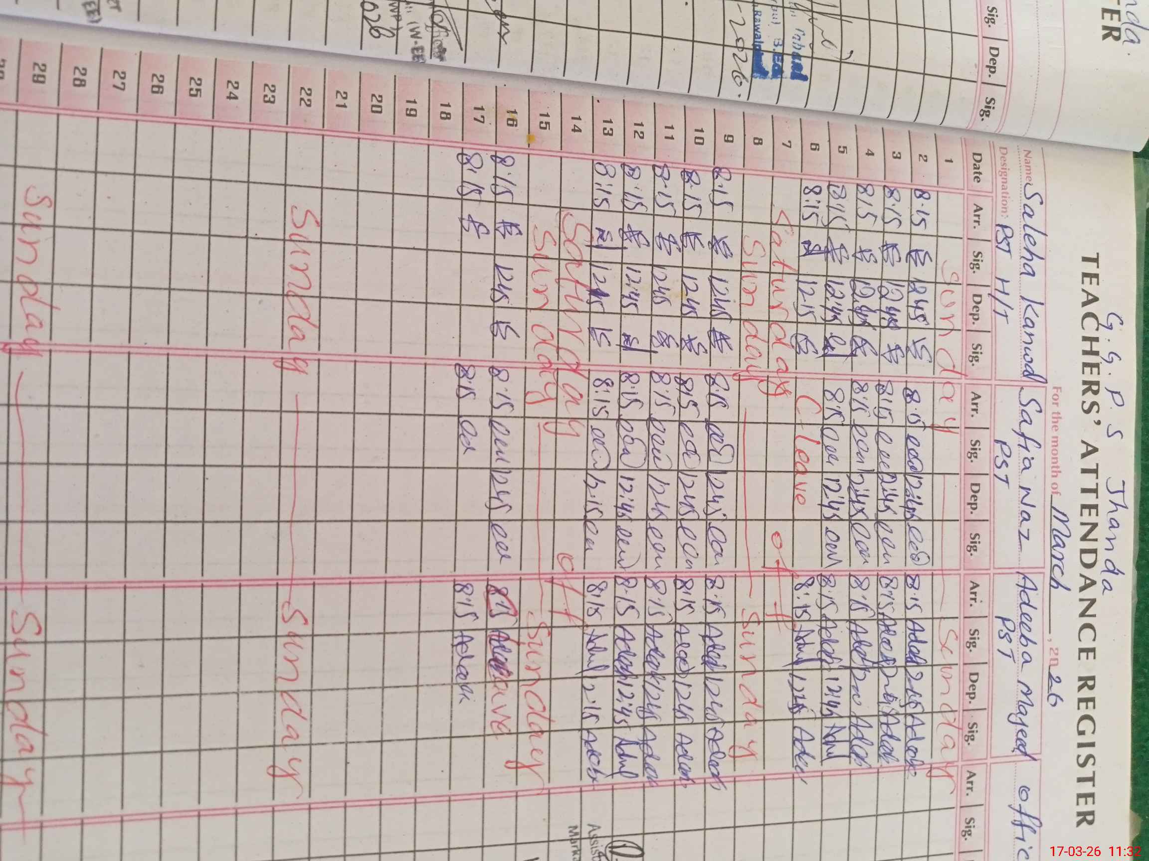 | CNIC | Full Name | Designation | R/C | Absence During Last Calender Month |