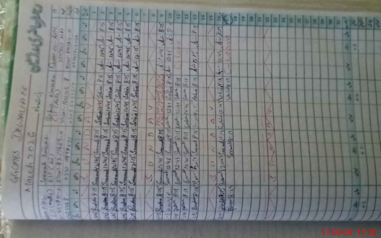 | CNIC | Full Name | Designation | R/C | Absence During Last Calender Month |