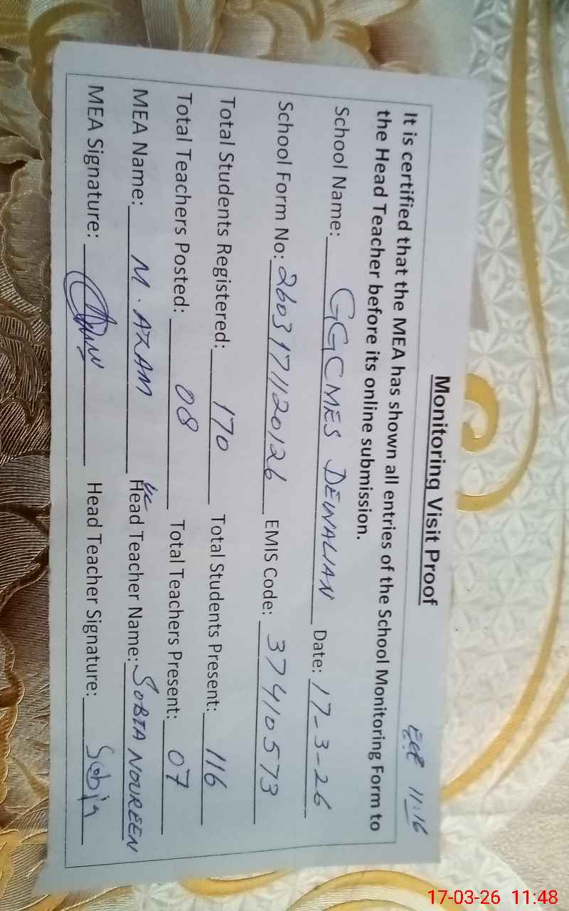 | EMIS Code: 37410573 | Name of School: GGCMES DEWALIAN | |||