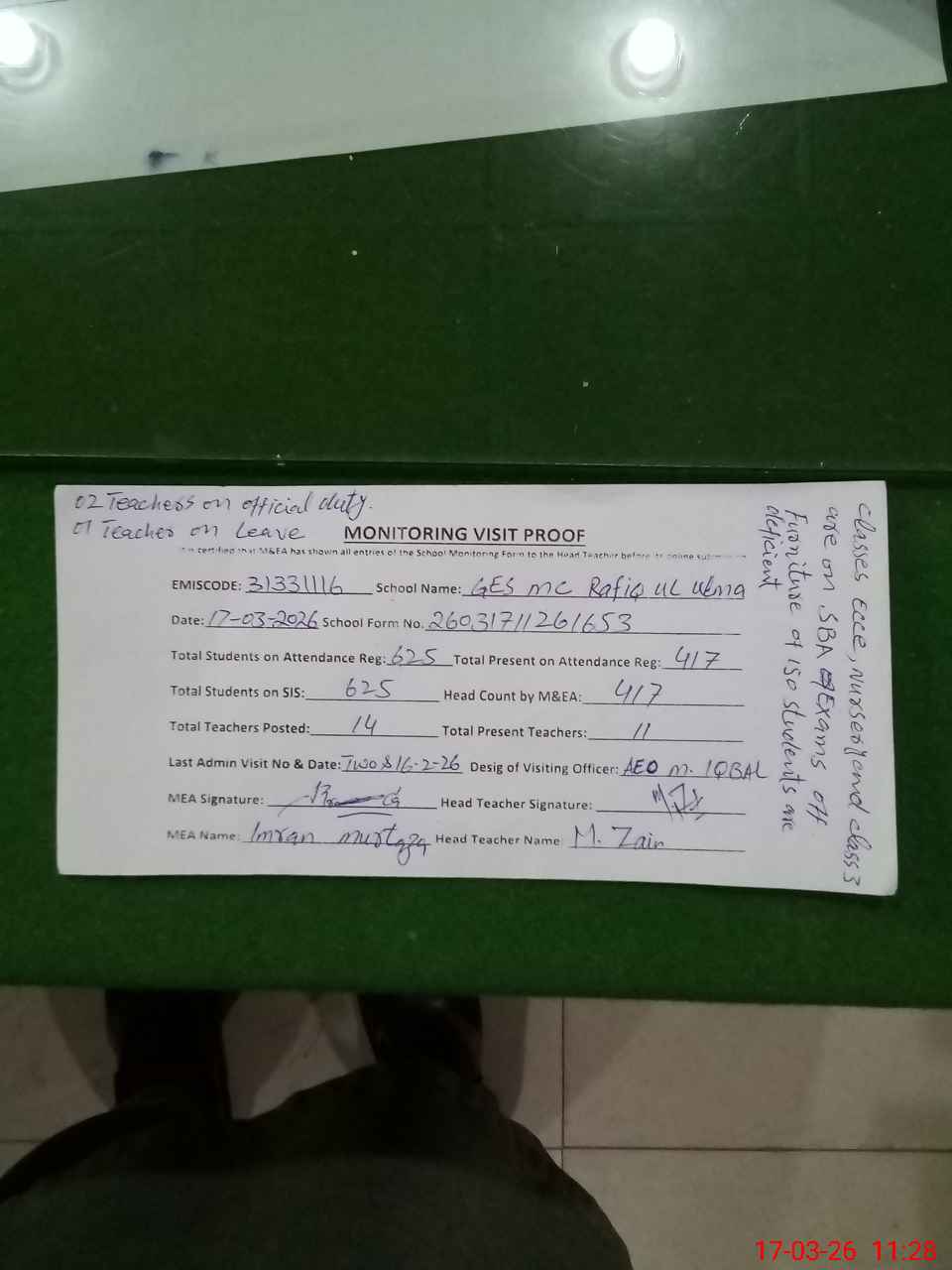 | Monitoring Date: 17-03-2026 | Start Time: 17-03-2026 10:34 AM | End Time: 17-03-2026 11:30 AM | Name of MEA: Im**** Mu**** | |