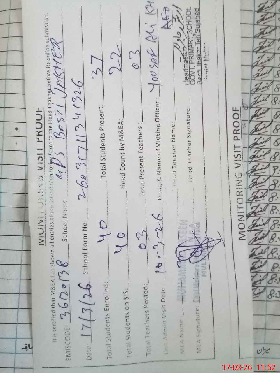 | EMIS Code: 36120138 | Name of School: GPS BASTI JAKHER P/O SIKINDARABAD | |||