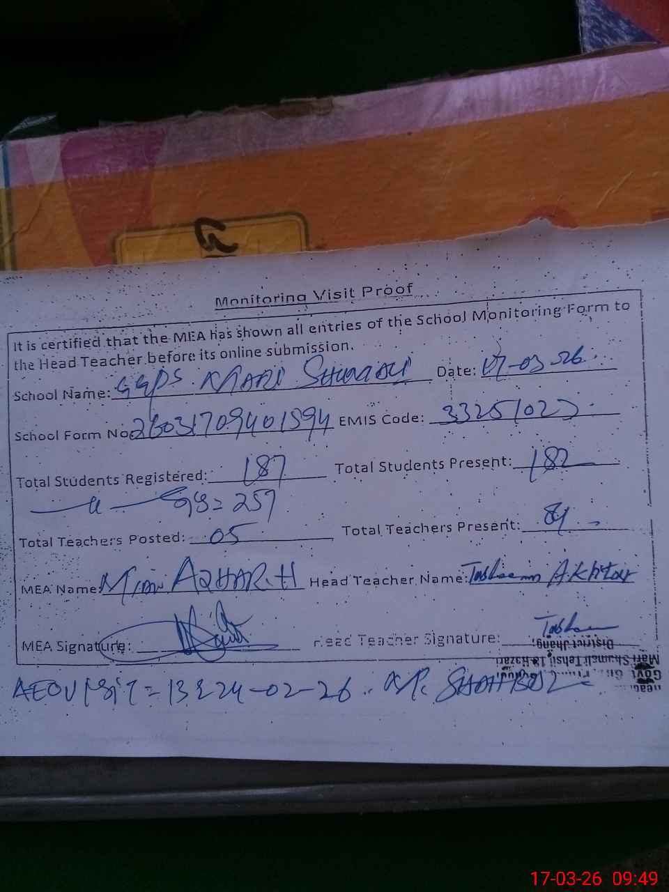 | EMIS Code: 33251023 | Name of School: GGPS MARI SHAH SAKHERA SHUMALI | |||