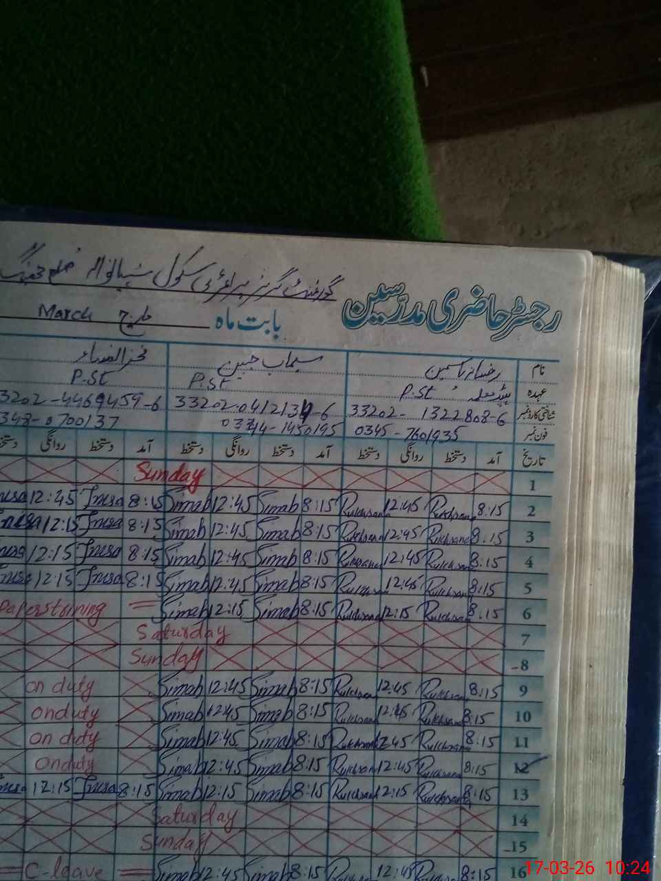 | Leave | Duty | Absent | Maternity | Medical | Ex- Pak |