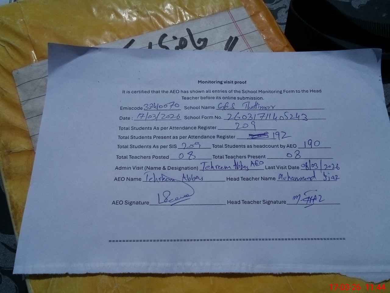 | EMIS Code: 38410070 | Name of School: GES THATHI NOOR | |||
