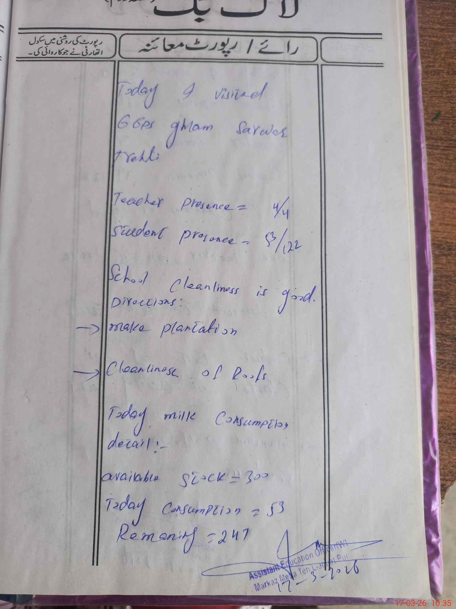 | EMIS Code: 31320998 | Name of School: GGPS GHULAM SARWAR TARHALI | |||
