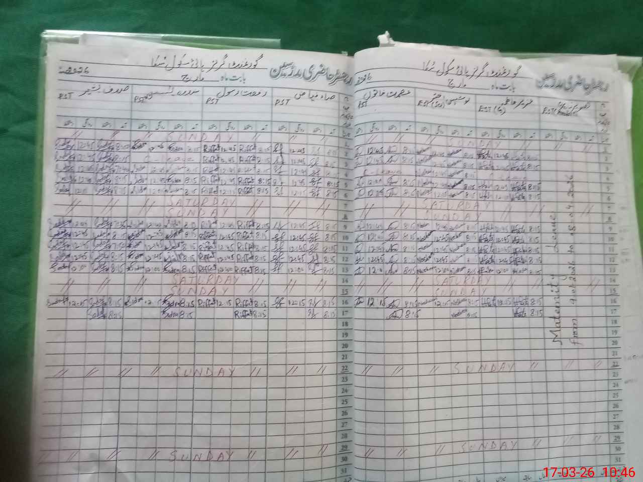 | Leave | Duty | Absent | Maternity | Medical | Ex- Pak |