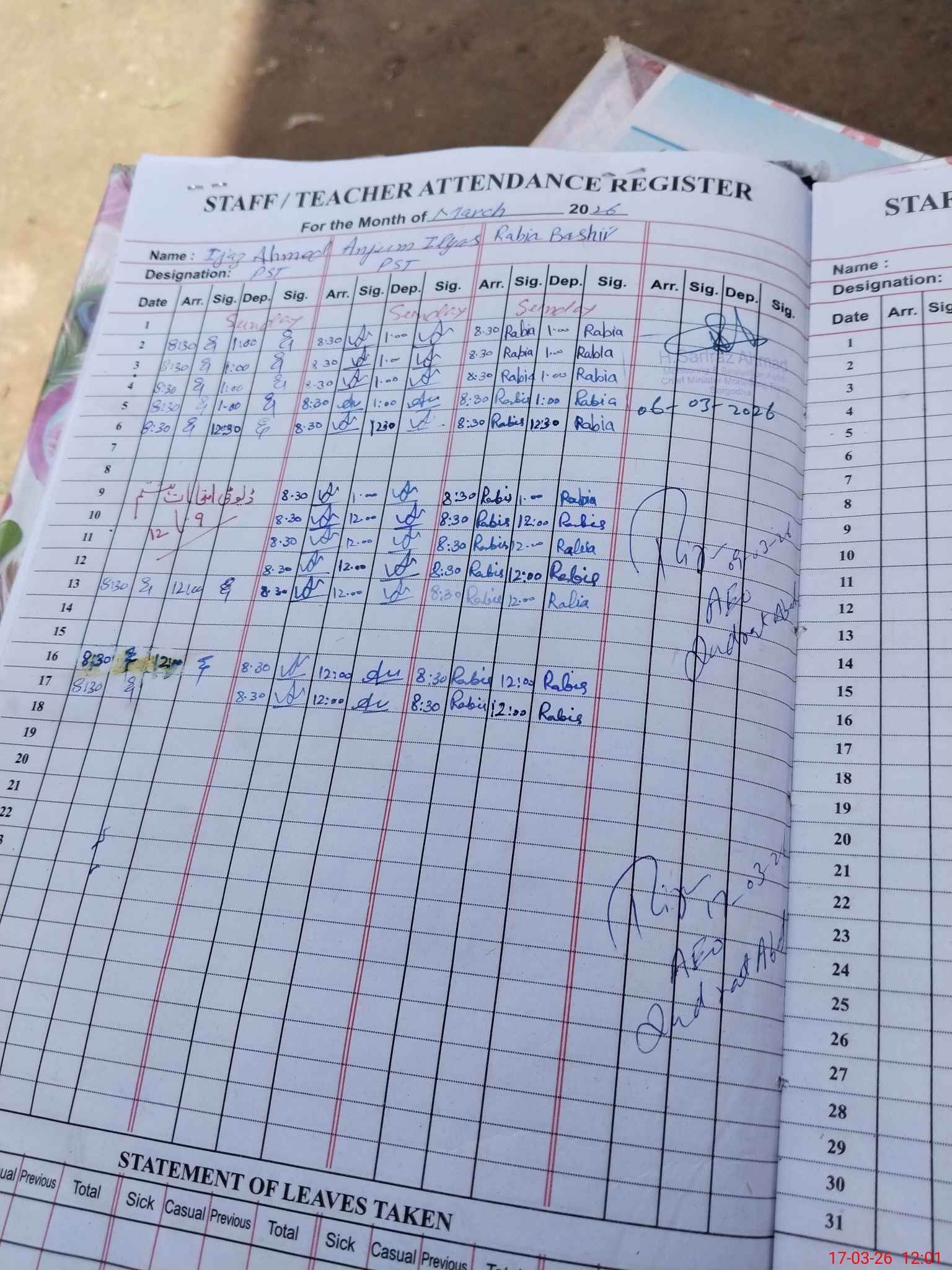 | Leave | Duty | Absent | Maternity | Medical | Ex- Pak |