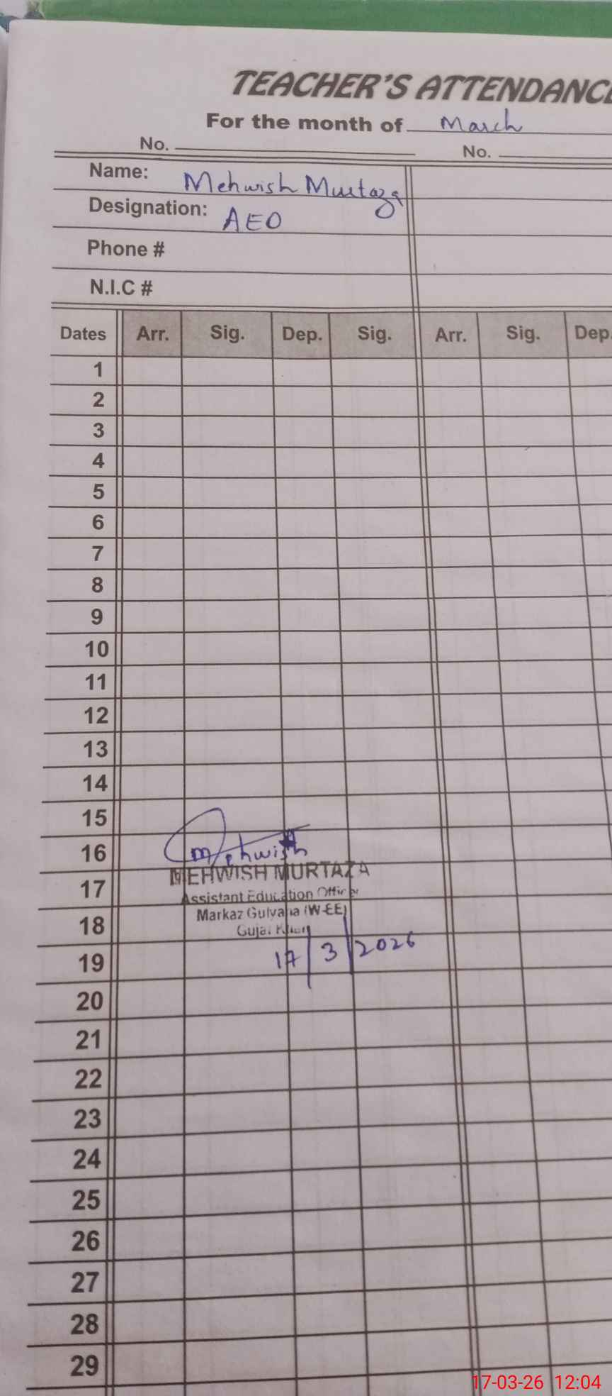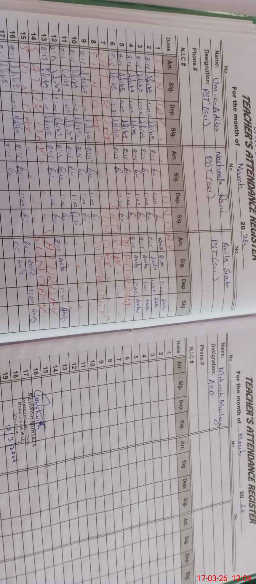 | Name: Um**** Ad**** Designation: (School Headmaster's/Headmistress's) PST Phone/Cell Number: 03**** |