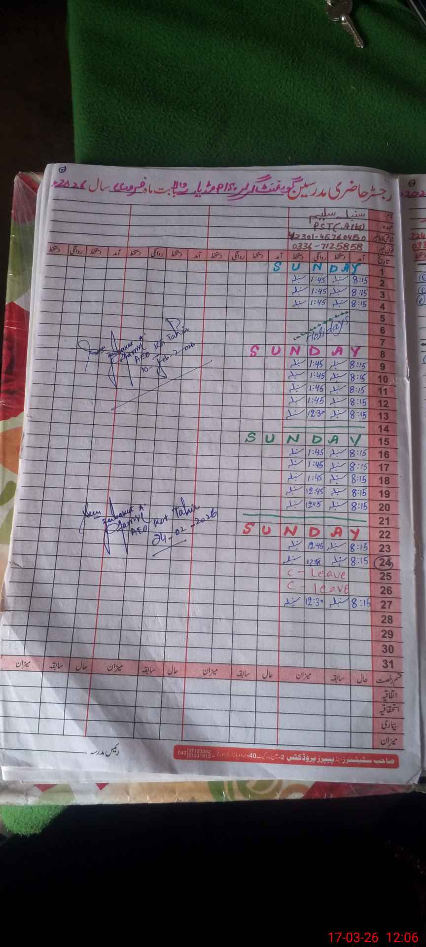 | Name: RE**** BI**** Designation: (School Headmaster's/Headmistress's) PST Phone/Cell Number: 03**** |