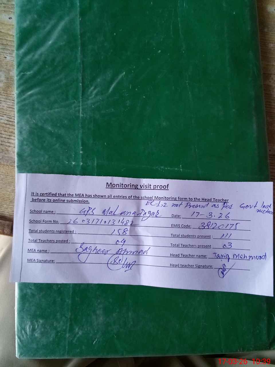 | EMIS Code: 38120175 | Name of School: GPS MALLANA DAGGAR | |||