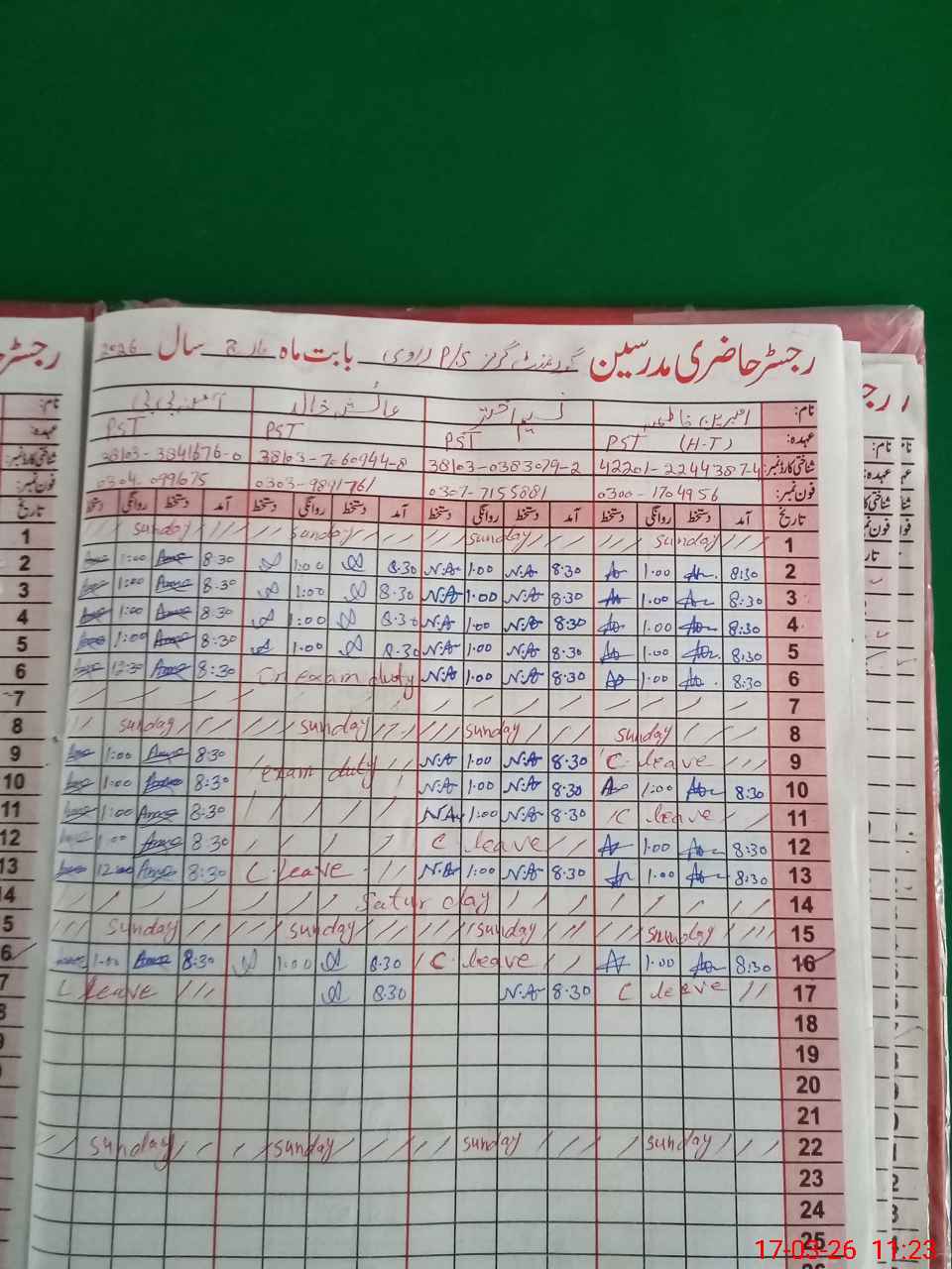 | CNIC | Full Name | Designation | R/C | Absence During Last Calender Month |