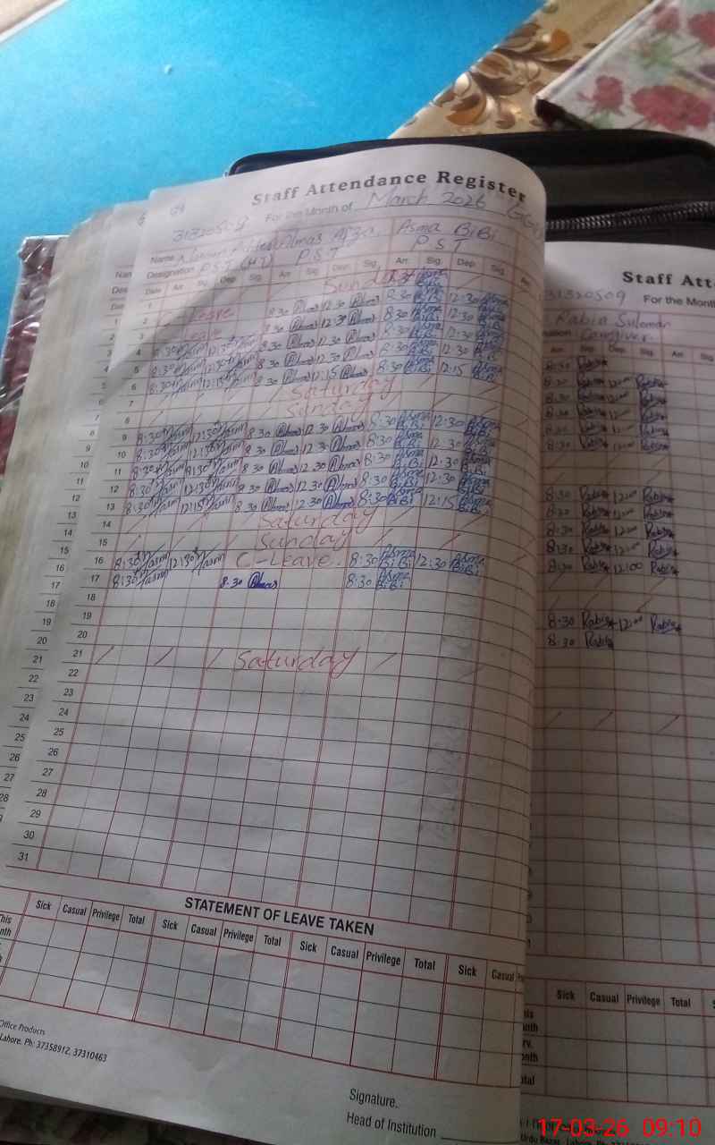 | Name: NA**** AK**** Designation: (School Headmaster's/Headmistress's) PST Phone/Cell Number: 03**** |