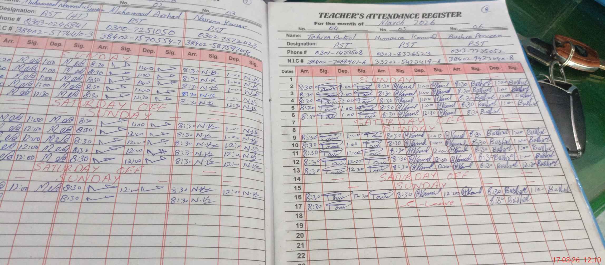 | CNIC | Full Name | Designation | R/C | Absence during last cal. month |