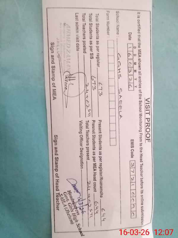 | EMIS Code: 37210090 | Name of School: GGHS SAEELA | |||