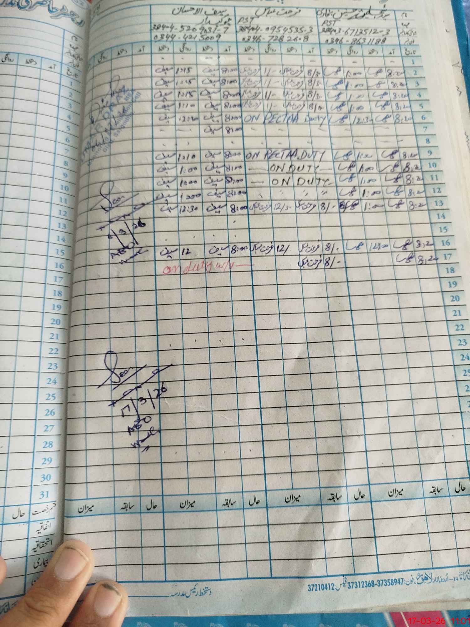 | CNIC | Full Name | Designation | R/C | Absence During Last Calender Month |