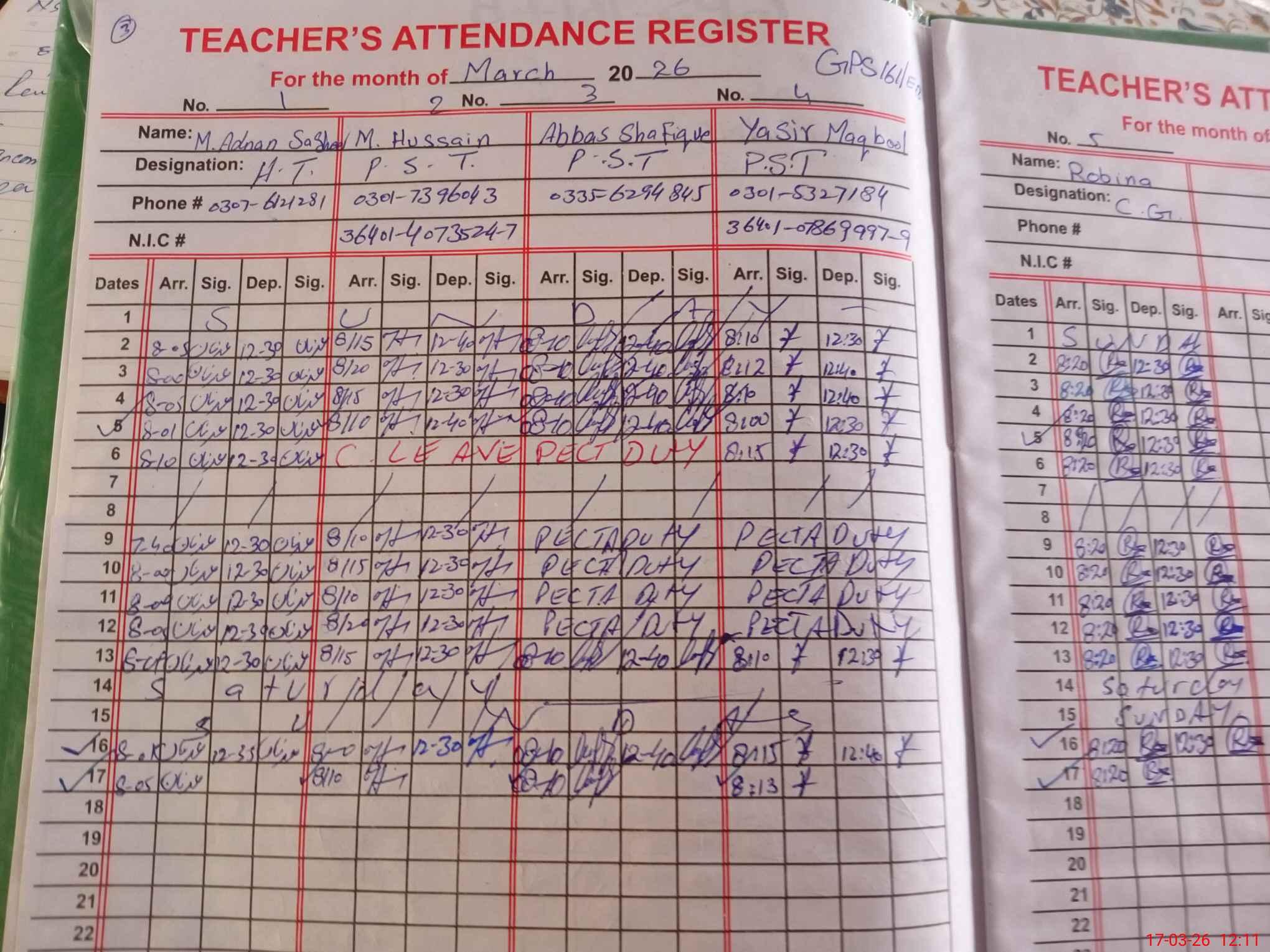 | Name: MU**** AD**** Designation: (School Headmaster's/Headmistress's) PST Phone/Cell Number: 03**** |