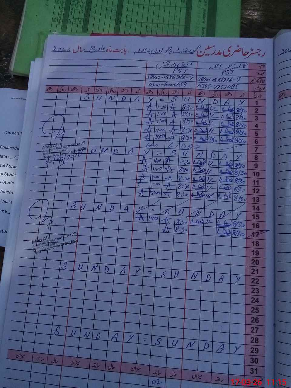 | Name: Ir**** Hu**** Designation: (School Headmaster's/Headmistress's) PST Phone/Cell Number: 03**** |