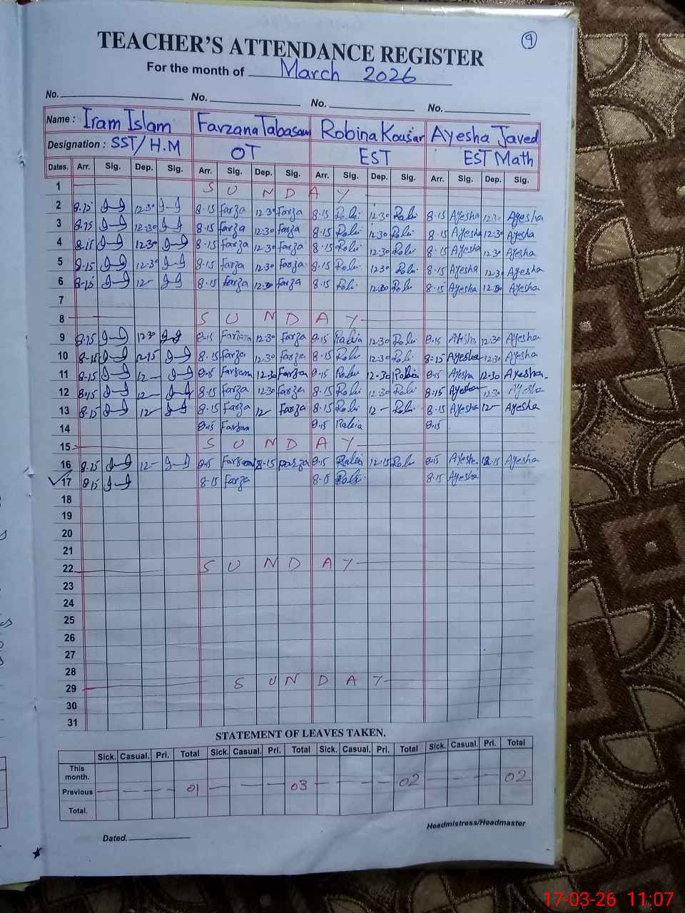 | Name: Ir**** Is**** Designation: (School Headmaster's/Headmistress's) SST Sc Phone/Cell Number: 03**** |