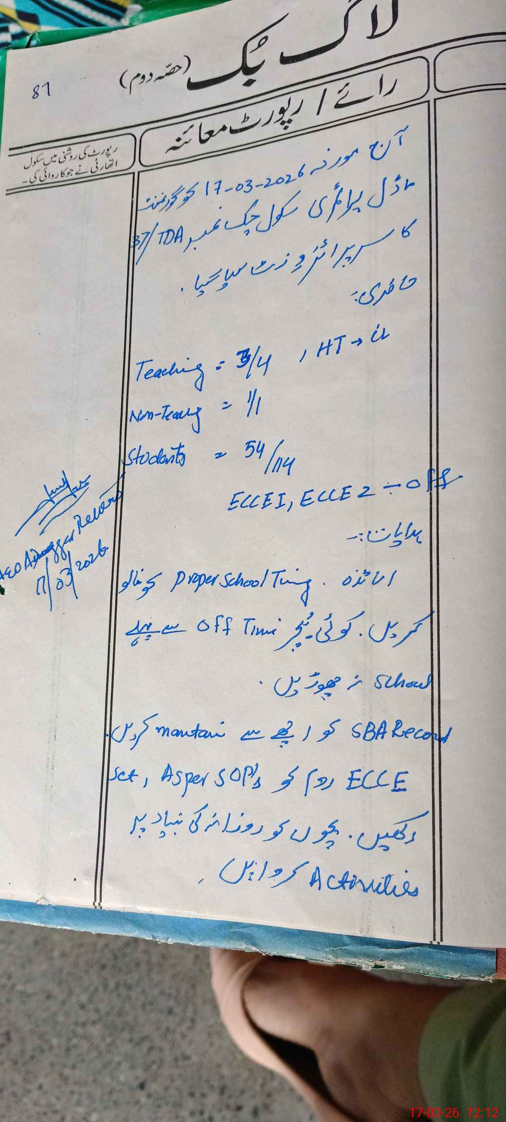 | Name: As**** Pa**** Designation: (School Headmaster's/Headmistress's) PST Phone/Cell Number: 03**** |
