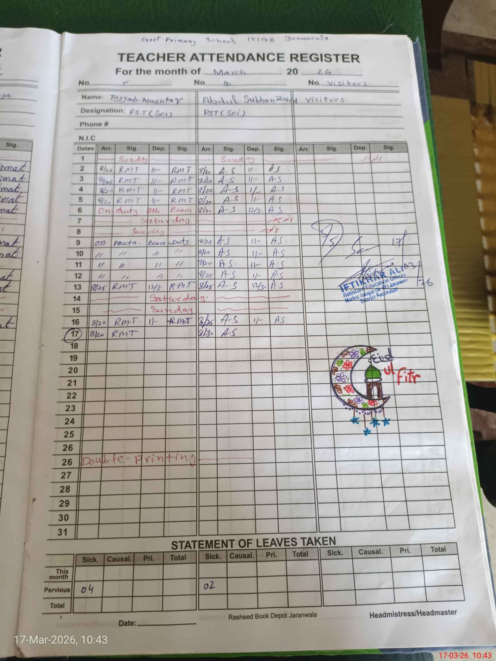 | Name: AB**** SA**** Designation: (School Headmaster's/Headmistress's) PST Phone/Cell Number: 03**** |