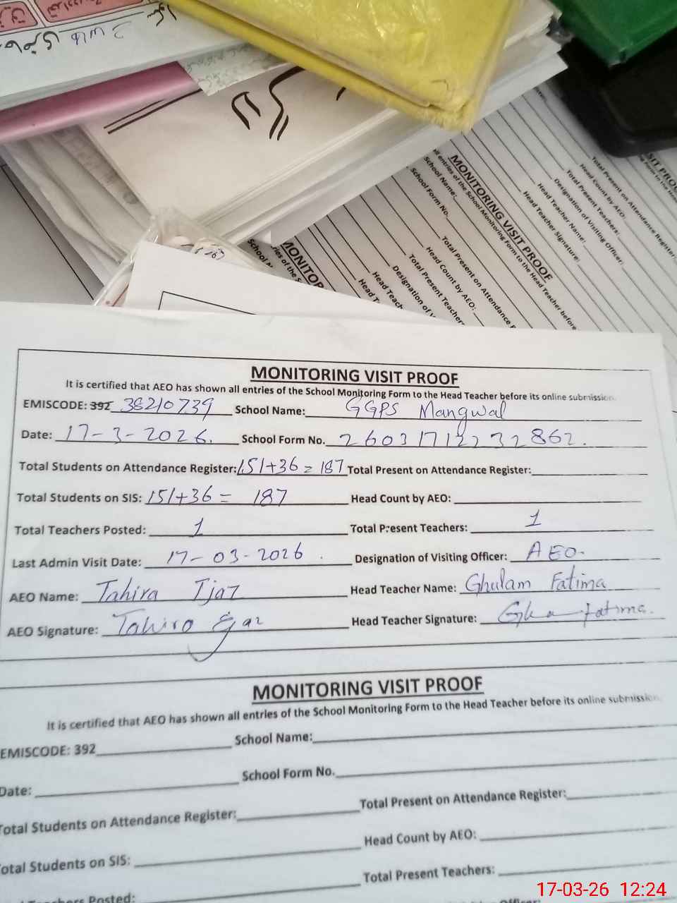 | EMIS Code: 38210739 | Name of School: GGPS MANGWAL | |||