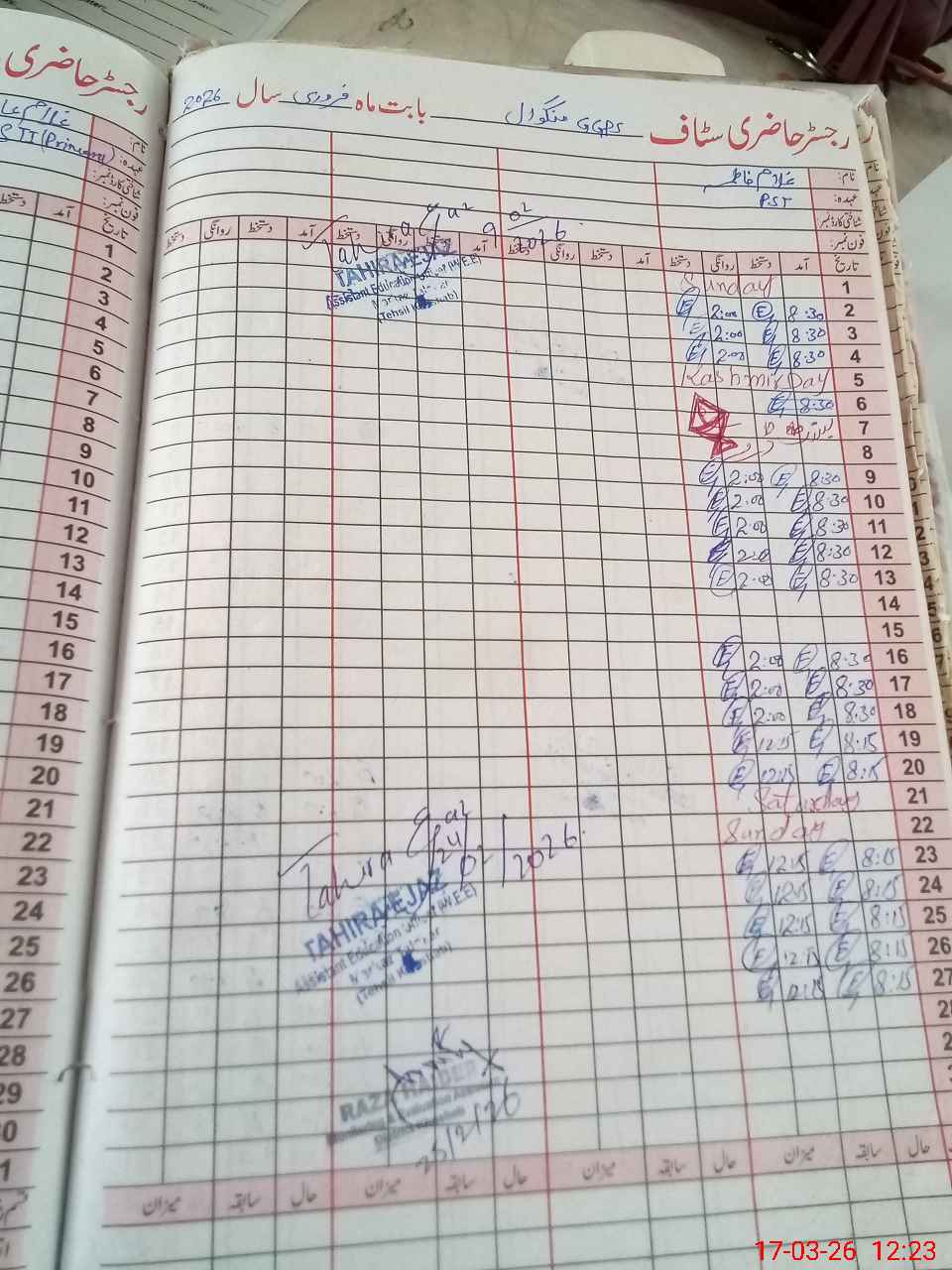 | CNIC | Full Name | Designation | R/C | Absence During Last Calender Month |