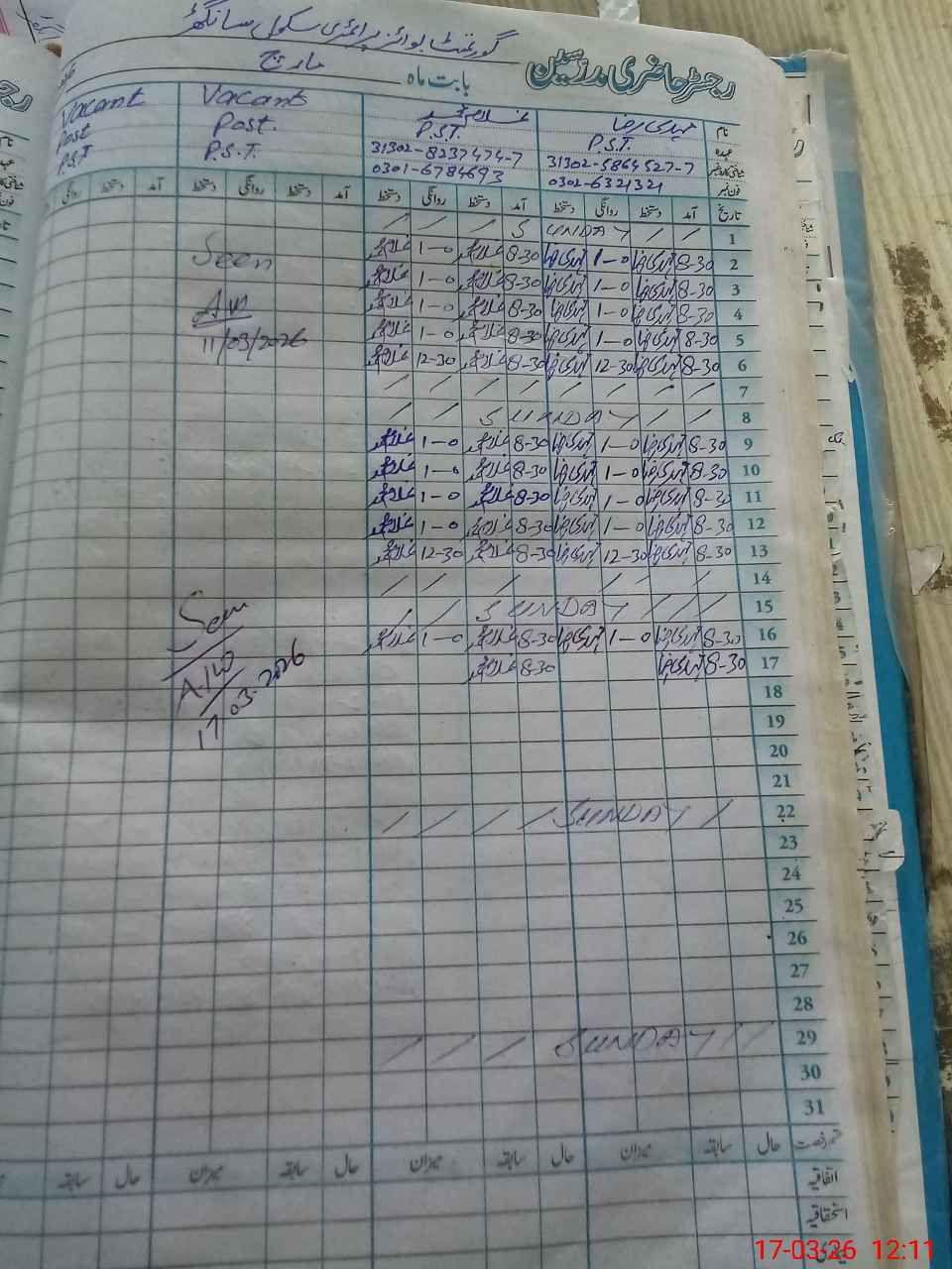| Name: ME**** RA**** Designation: (School Headmaster's/Headmistress's) PST Phone/Cell Number: 03**** |