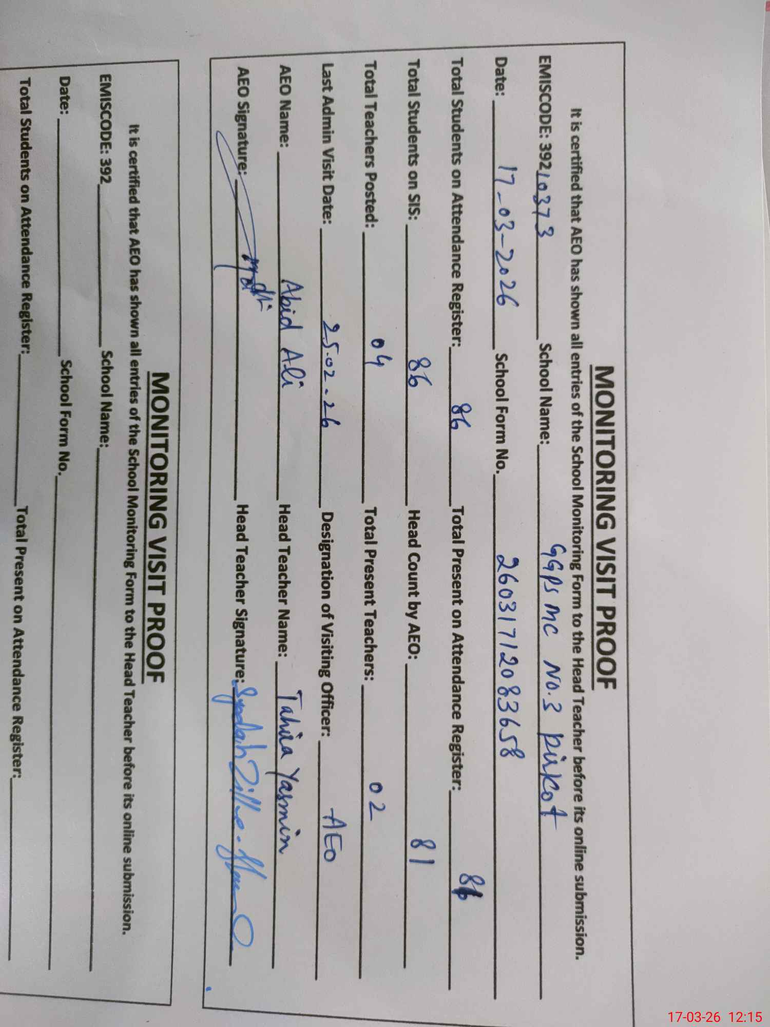 | EMIS Code: 39210373 | Name of School: GGPS MC NO. 3 PIR KOT PAKPATTAN | |||