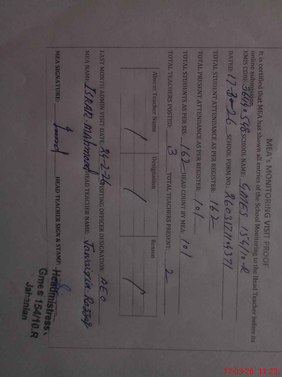 | EMIS Code: 36440548 | Name of School: GMES 154/10-R, JAHANIAN | |||