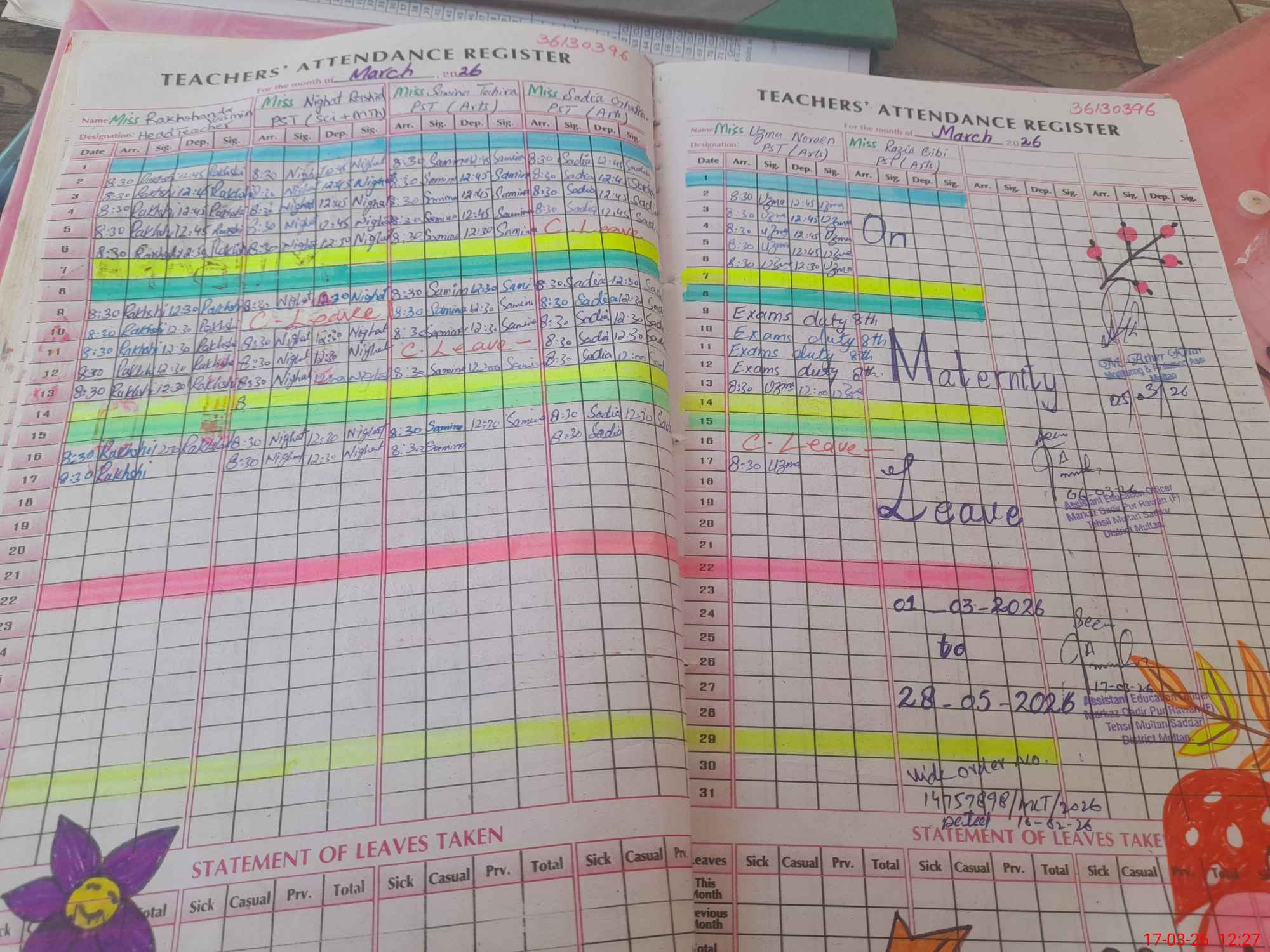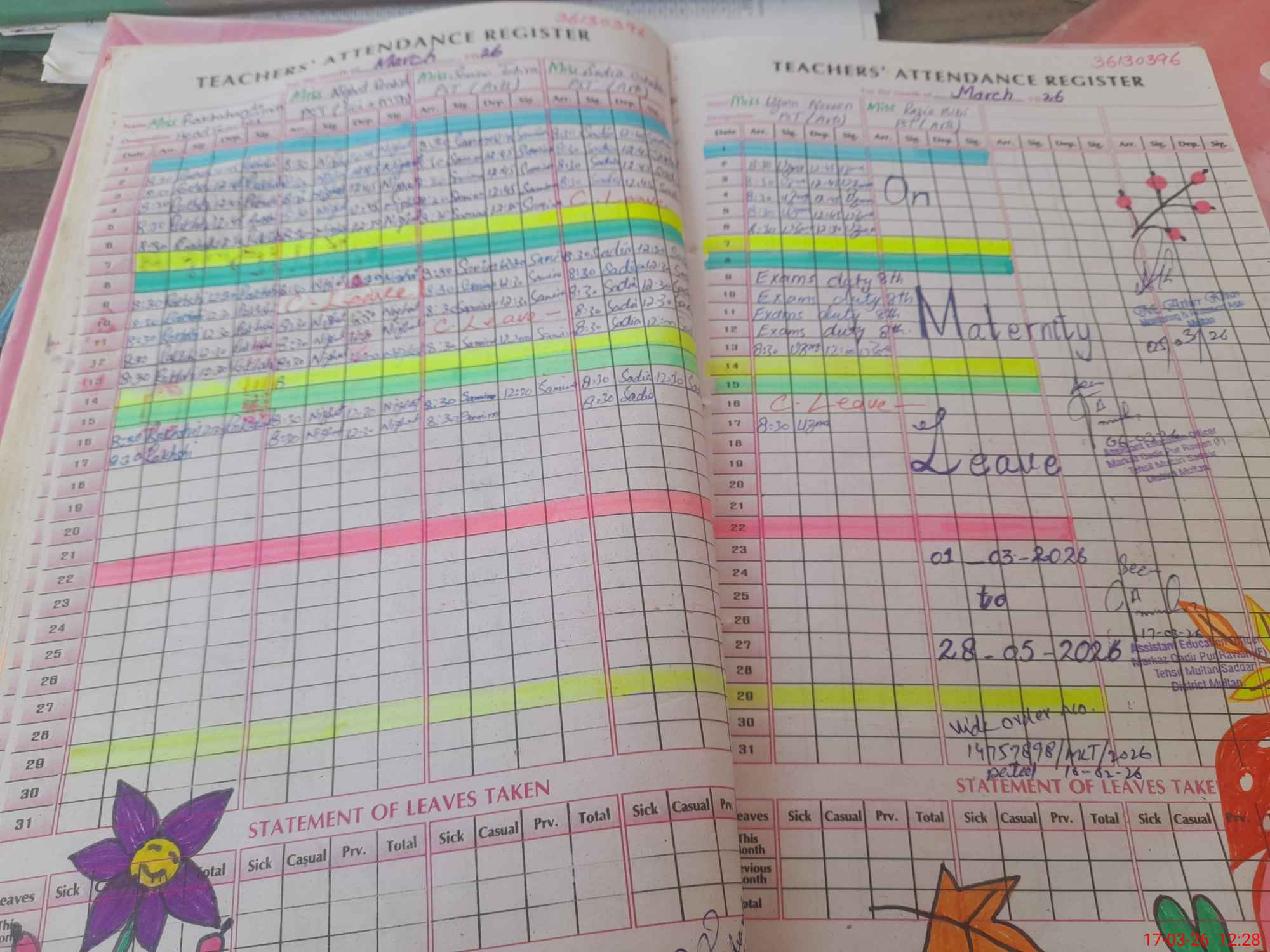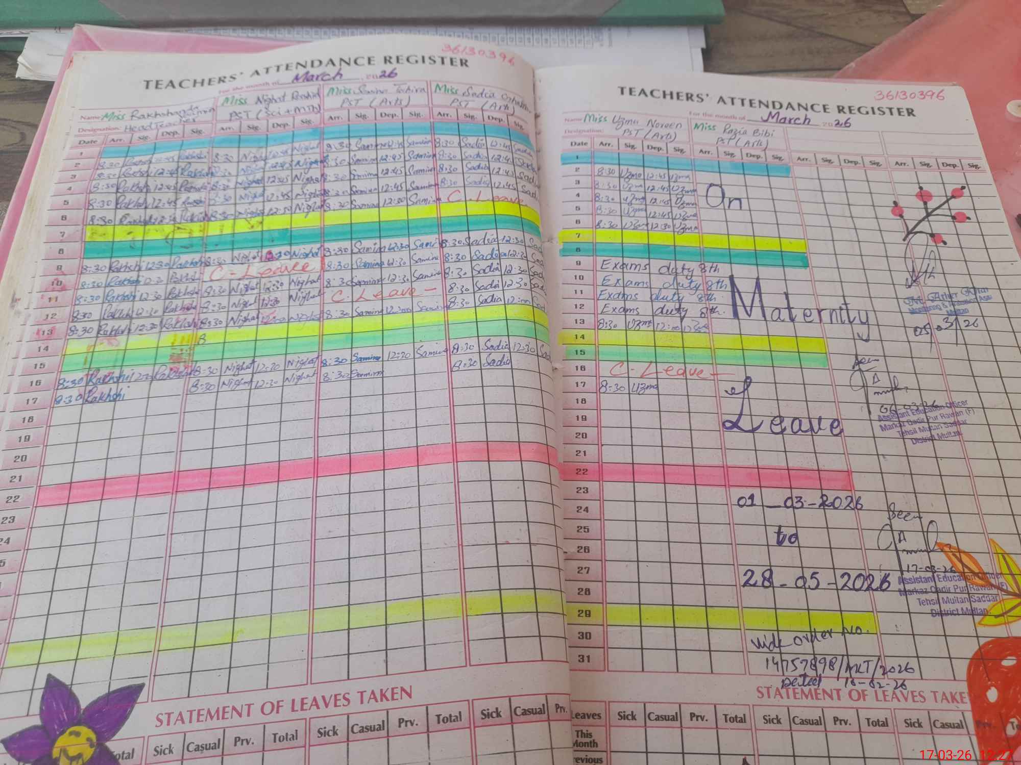 | Leave | Duty | Absent | Maternity | Medical | Ex- Pak |