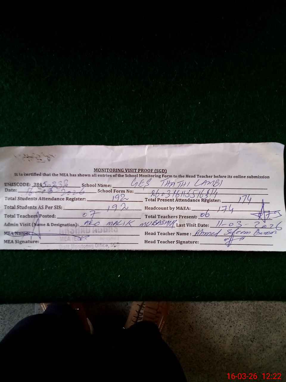 | EMIS Code: 38450232 | Name of School: GES THATHI LAMBI | |||