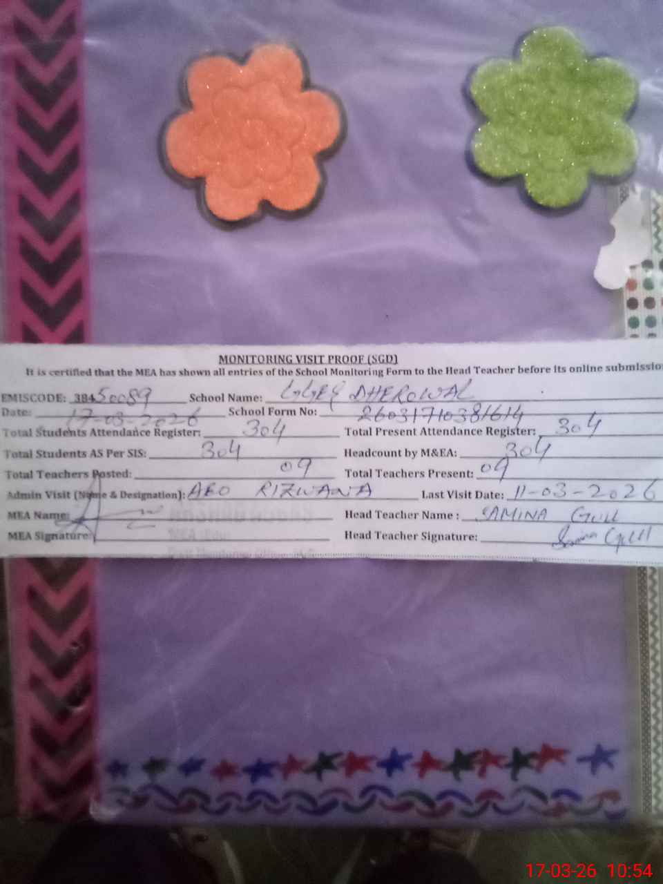 | EMIS Code: 38450089 | Name of School: GGES DHERO WAL | |||