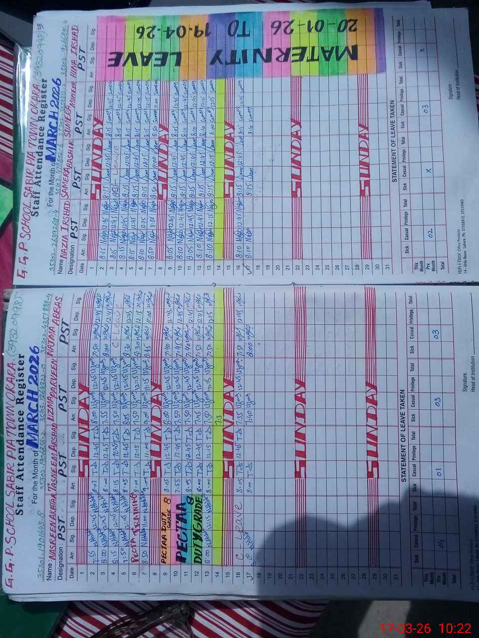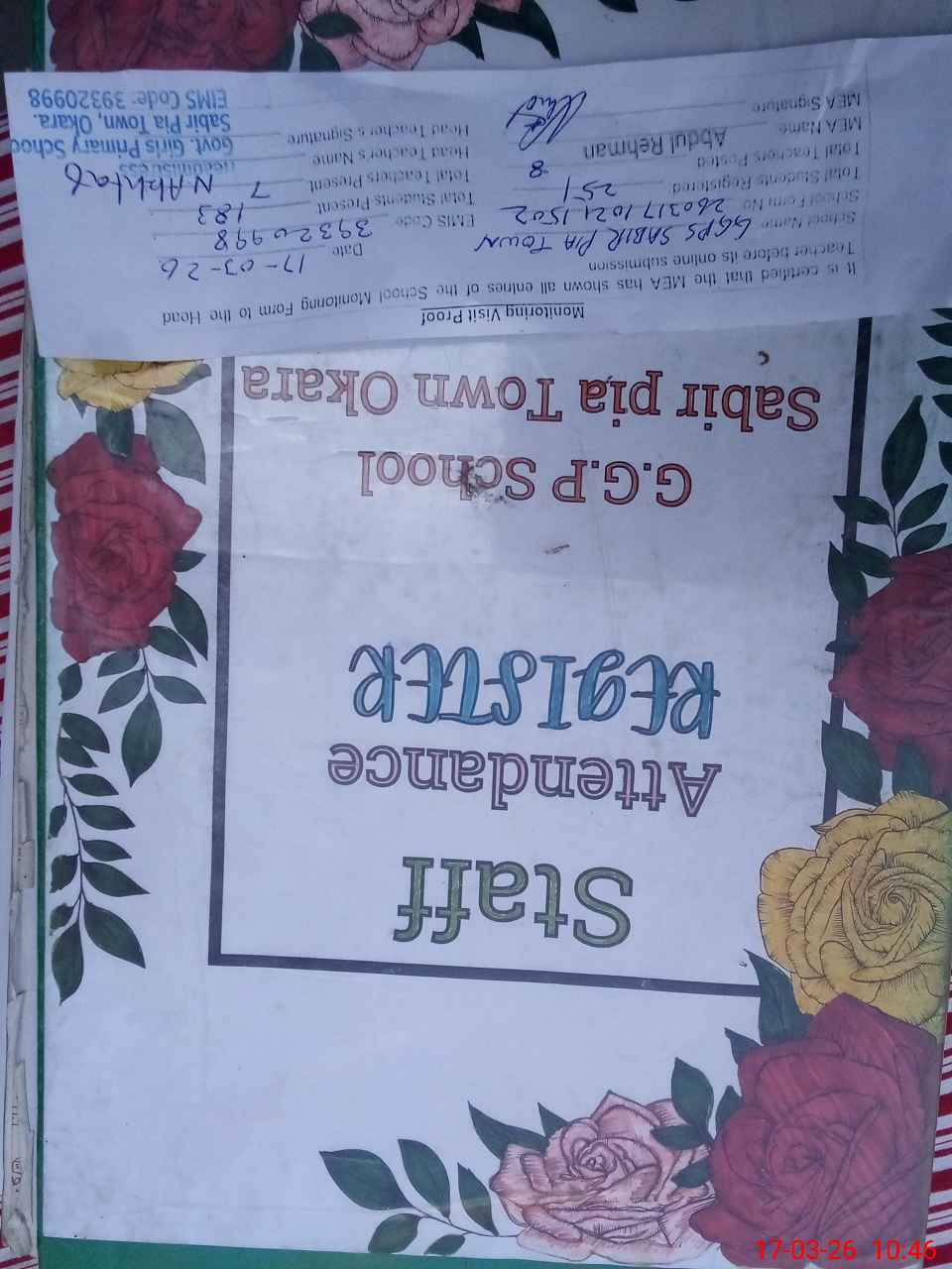 | EMIS Code: 39320998 | Name of School: GGPS SABIR PIA TOWN OKARA | |||