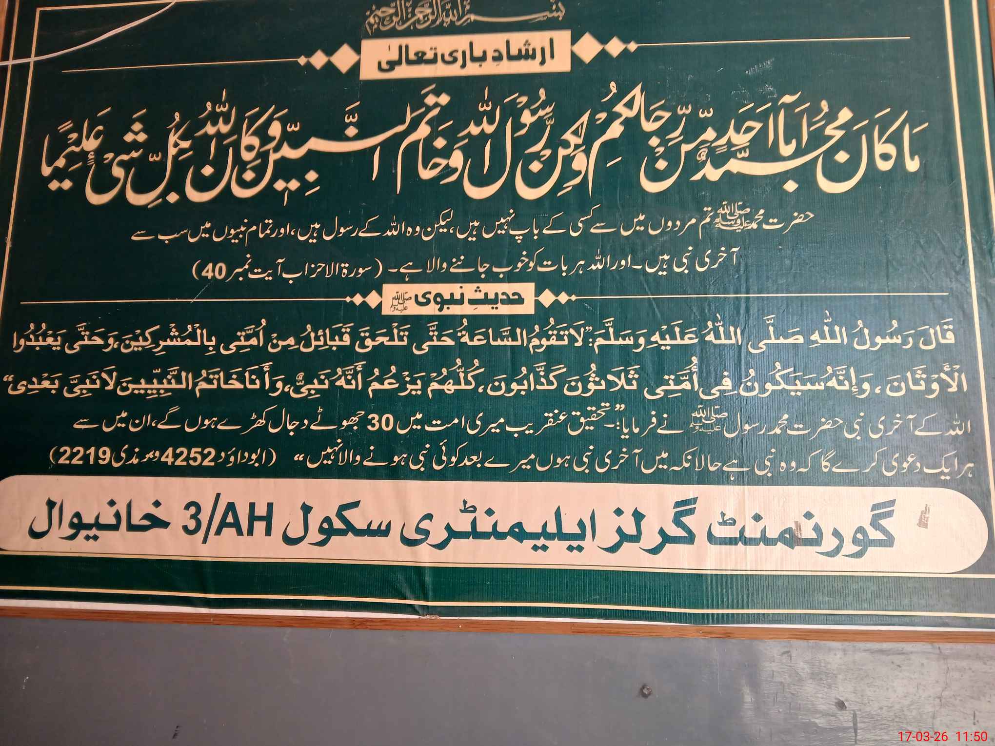 | District: KHANEWAL | Tehsil: KHANEWAL | Markaz: MAKHDOOM PUR - FEMALE | Level: Middle | |