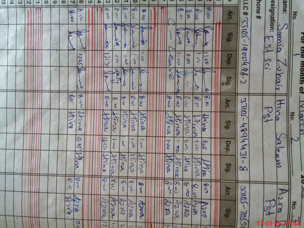 | CNIC | Full Name | Designation | R/C | Absence During Last Calender Month |