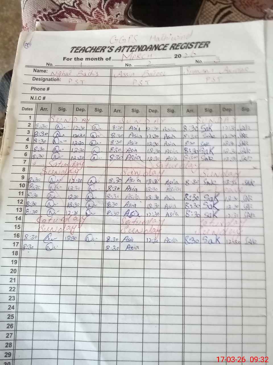 | 38**** | Sh**** Ak**** | PST Arts | Regular | 0 | 0 | 0 | 0 | 0 | 0 | 0 | 0 | 0 | Absent (Un-Authorized) |
